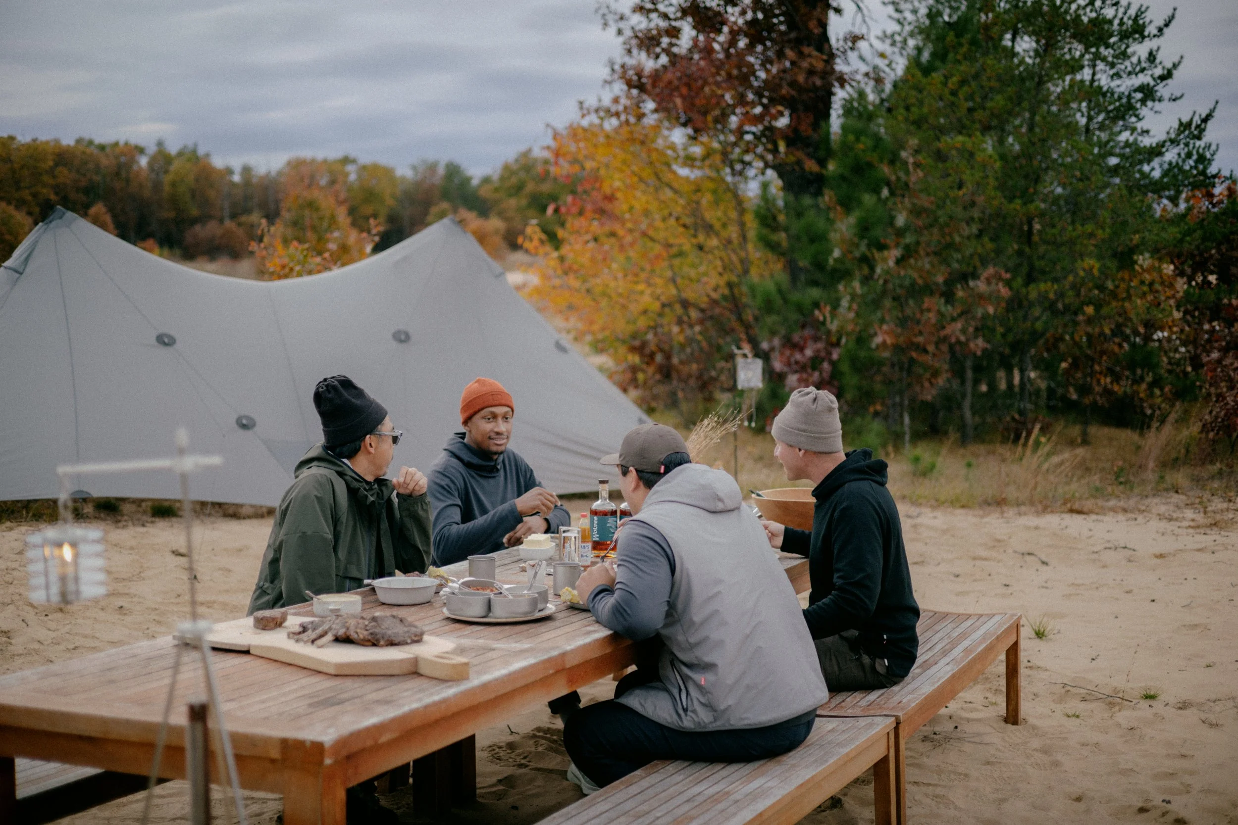 Sentinel Basecamp is built to bring people together to collaborate, learn, and create through a mix of gear, travel, food, camp, and sport. We often travel to play golf in wild, serene places only to retreat inside for more comfortable sleeping quarters but what if we built products that cannot only perform in the elements but live in them too? What new experiences could be uncovered? What new places could be explored and new conversations be had?